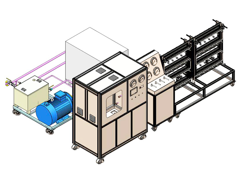 供油系统2:工作压力为30—80MPa,压力波动不大于0.2MPa,流量≥1L/min,可同时进行80个产品的测试;