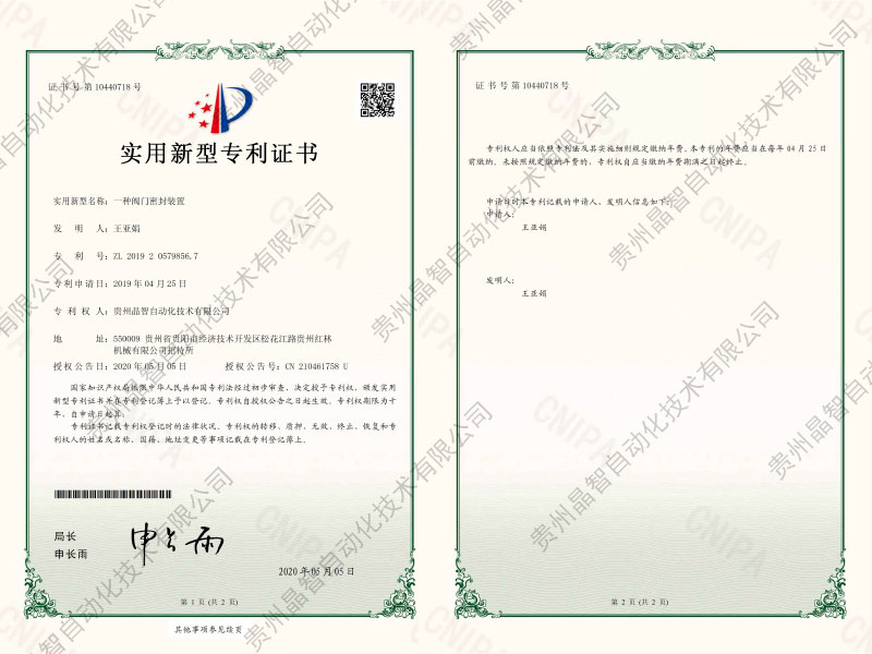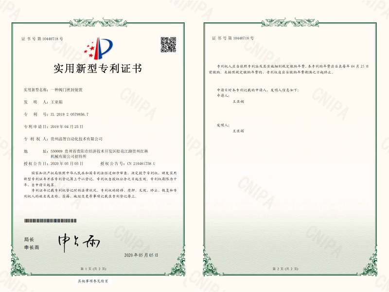 一种阀门密封装置专利证书